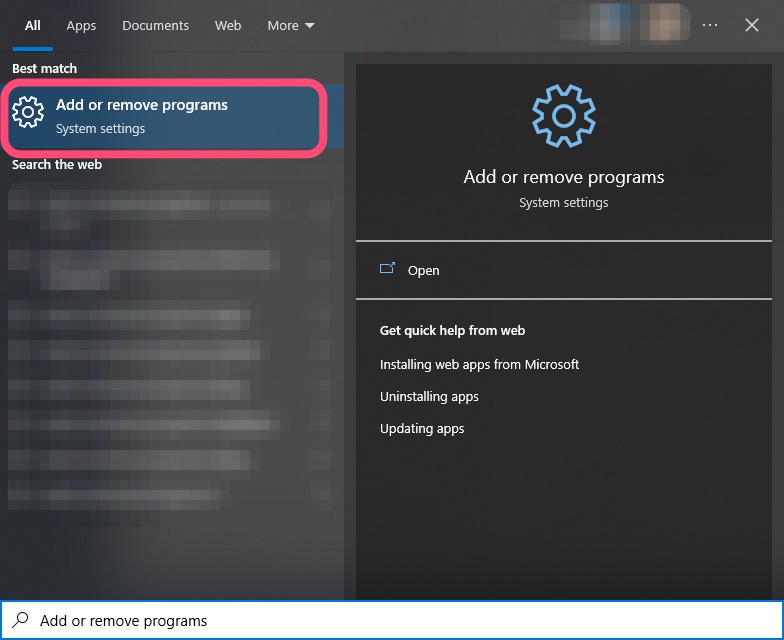 On your computer, click the Windows icon to open the Start menu and begin typing Add or remove programs. Click Add or remove programs to see the list of apps and features on your computer.
