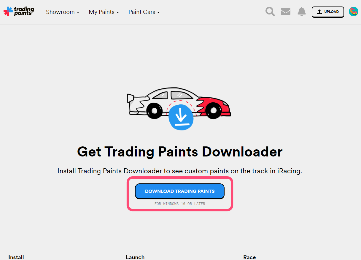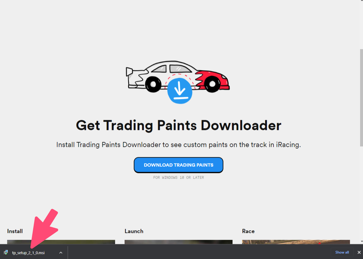 Click the Download Trading Paints button on the page to initiate the download for the program installer.
