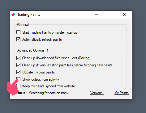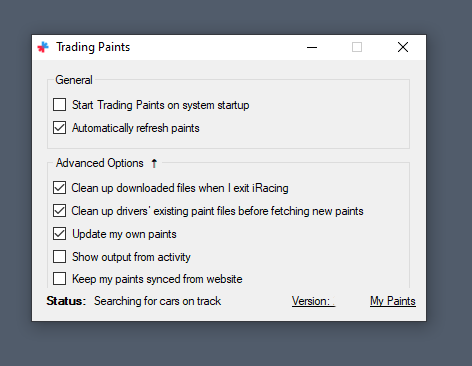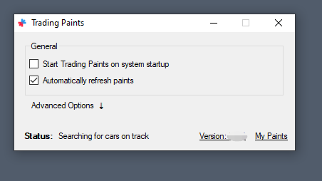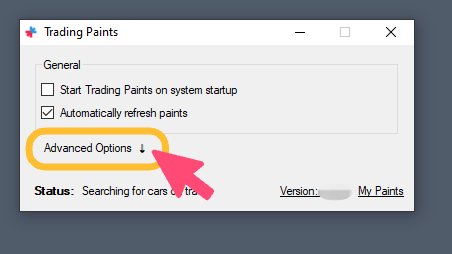With Trading Paints Downloader open, click the arrow next to Advanced Options. This will reveal a few additional settings.
