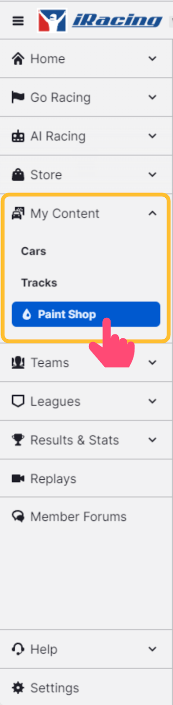 To prevent “ghosted” logos from appearing on your custom paint caused by spec maps on the iRacing default paint patterns, select a different base pattern paint in the iRacing paint booth that’s different from the default paint.