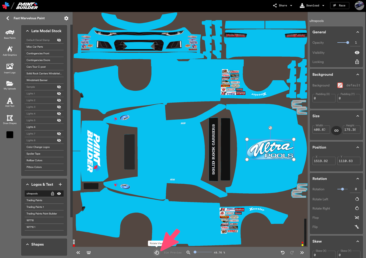 Click the Rotate View button to change your view so it’s easier to work on other areas of the car.