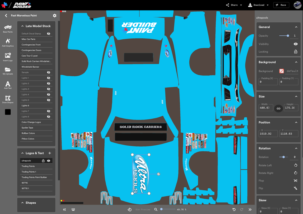 The sometimes unfortunate nature of flat templates is that some panels of the car are placed upside down and sideways, which isn’t always ideal.