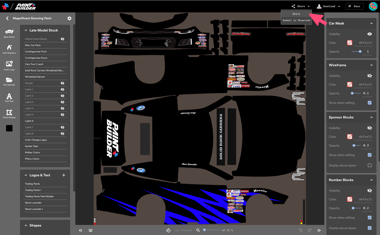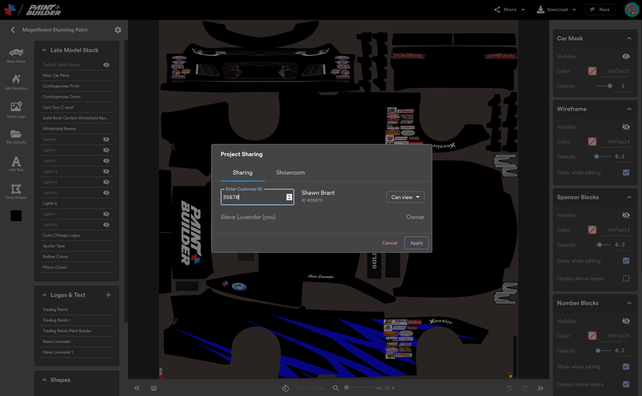 You can share a Paint Builder project you’ve created with another member in order to collaborate on a paint or just show your work in progress.