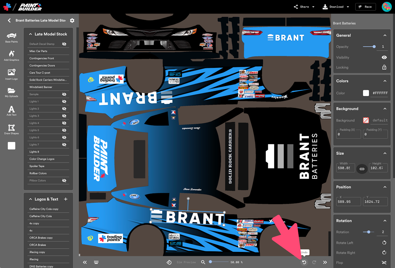 Undo and redo changes made to a Paint Builder project